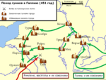 Былинный фейл, который случился по воли великого рандома. После возвращения из похода на Италию Аттила вновь стал угрожать Византии, требуя дань, оговорённую с покойным императором Феодосием. Император Маркиан пробует договориться с вождём гуннов, посылает подарки, однако Аттила отказывается от них. Аттила совершил стремительный рейд на аланов, поселившихся на Луаре в центре Галлии. Внезапно Аттила по-тихоньку становился не тем:король вестготов Торисмунд успел прийти к ним на помощь, и в сражении Аттила если и не был разгромлен, то вынужден был отступить к себе в Паннонию и Дакию.