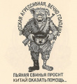 Как известно, ближнего мочить гораздо проще, если убедить себя, что он не человек. Так укры любят называть оккупантов орками (в догонку к старому мему Москва==Мордор), ОРЛОвских сепаратов — колорадами (в виду георго-ленточной окраски). А русаки кличут любого открыто анти-рассейского укра — бандерлогом (от Бандеровцев) и изображают с различными свиными атрибутами (сало — наше ихнее всё). Впрочем укры тоже самое делают и порой можно встретить термин свинопсы. Изображать врага свиньями и призывать к свинорезу — традиция древняя, как сама война.