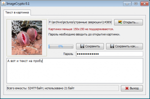 Окно программы Xiao steganography