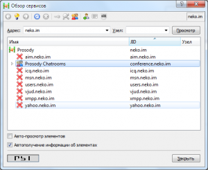 • Psi — мультиплатформенный клиент, обладающий всеми мыслимыми возможностями. К тому же достаточно удобен в использовании. Поддерживает несколько аккаунтов одновременно, поэтому необходимость в транспортах с джаббера на джаббер отпадает. Клиент является открытым/свободным. Стоит отдельно отметить отечественную, весьма неплохую доработку Psi — Psi+.