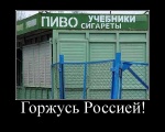 Горжусь Россией! — девиз истинных почитателей Этой страны, тонких ценителей ее запоминающихся достижений и успехов. Таким характерным способом достопочтенный анонимус реагирует на разного рода заслуживающие внимания детали и черты Влеикой Роисси. Прием оказался особенно удобным для использования в демотивационных постерах, пришелся по вкусу и получил широкое распространение.