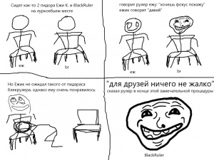 - Ruwshun (равщАня), — впоследствии ставший модератором Луркоморья пиздоглазый мудак;